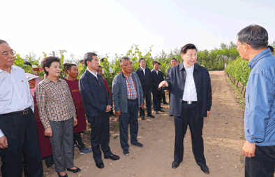 ? ▲6月9日下午,習(xí)近平在銀川市西夏區(qū)葡萄種植基地,同工人和技術(shù)人員交流。