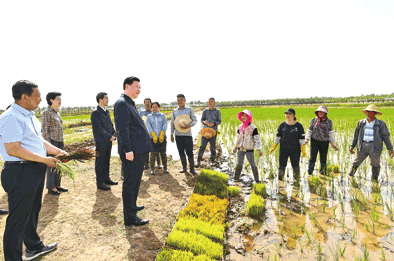 ▲6月9日下午,習(xí)近平在銀川市賀蘭縣稻漁空間鄉(xiāng)村生態(tài)觀光園,同正在勞作的村民親切交談。