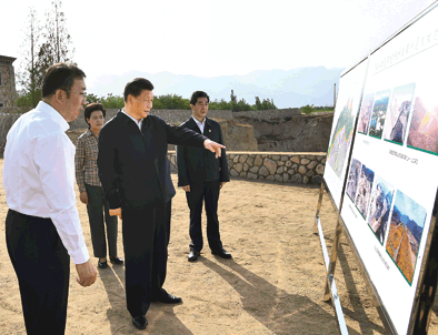 ▲6月9日下午,習(xí)近平在銀川市西夏區(qū)賀蘭山東麓,聽取賀蘭山生態(tài)保護和環(huán)境綜合整治情況匯報。