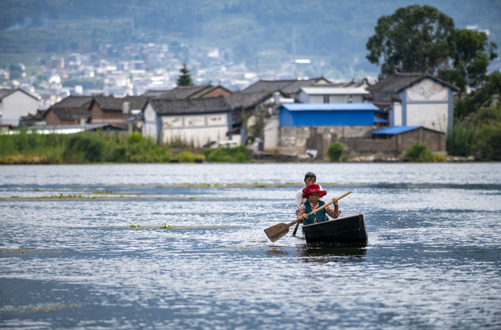 9月28日,洱源西湖當(dāng)?shù)卮迕駝澊鲂?。新華社記者 陳欣波 攝