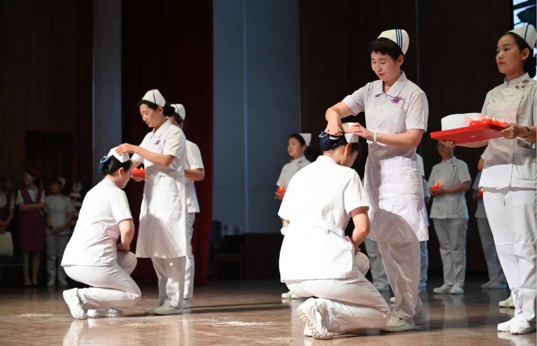 護(hù)士授帽,薪火相傳,精彩的授帽儀式在眾人的期待中如約而至。護(hù)生直跪在前輩面前,由前輩為護(hù)生戴上象征著圣潔天使的潔白燕帽,這個(gè)動(dòng)作意味著南丁格爾精神在前輩與后輩之間的傳遞和繼承;佩戴完成后,雙方鞠躬行禮,表達(dá)師生之間的尊重與敬意。同時(shí),護(hù)生從前輩手中接過(guò)傳遞著“燃燒自己,照亮他人”、象征著南丁格爾手中那盞明燈的紅燭,以示繼承和發(fā)揚(yáng)護(hù)理事業(yè)的光榮傳統(tǒng),奉獻(xiàn)愛(ài)心,關(guān)愛(ài)生命,以愛(ài)的名義堅(jiān)守使命和責(zé)任。此時(shí),我們看到了殷都區(qū)護(hù)理工作者的責(zé)任與擔(dān)當(dāng),一襲飄然白衣是一顆純潔的心靈,一頂別致的燕帽是一項(xiàng)守護(hù)生命的重任。