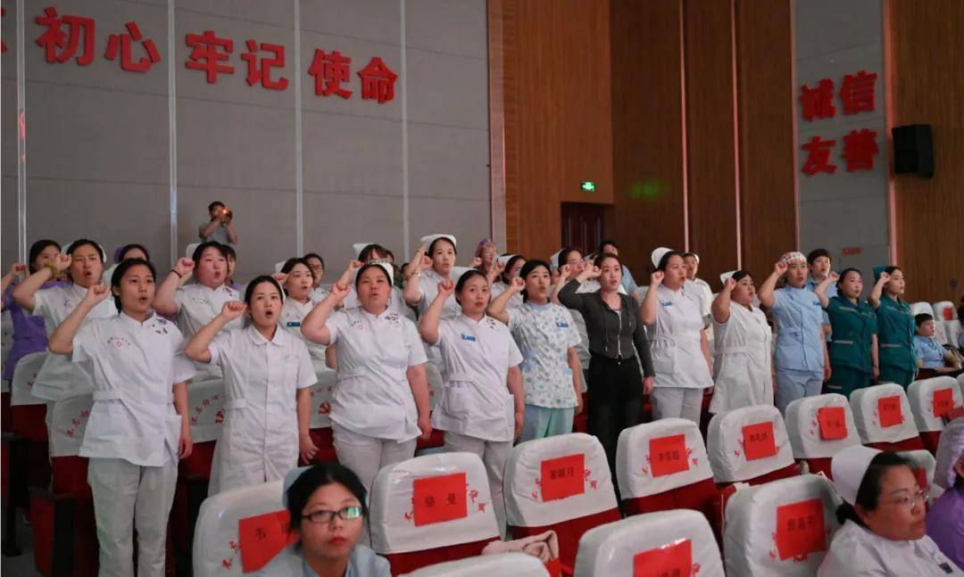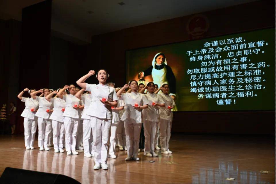 緊隨著授帽儀式,全體護(hù)士進(jìn)行了宣誓。護(hù)士們整齊劃一,高舉右手,巍然矗立。余謹(jǐn)以至誠(chéng),于上帝及會(huì)眾面前宣誓:終身純潔,忠貞職守。勿為有損之事,勿取服或故用有害之藥。盡力提高護(hù)理之標(biāo)準(zhǔn),慎守病人家務(wù)及秘密。竭誠(chéng)協(xié)助醫(yī)生之診治,務(wù)謀病者之福利。謹(jǐn)誓!每個(gè)人都表現(xiàn)出了堅(jiān)定和溫暖的一面,每一句誓言都充滿了責(zé)任感和使命感,表達(dá)出自己對(duì)護(hù)理事業(yè)的熱愛(ài)和執(zhí)著。