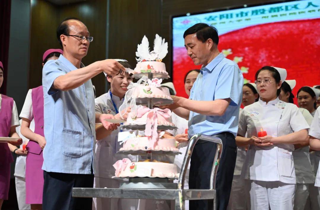 區(qū)衛(wèi)健委黨組書(shū)記、主任李國(guó)強(qiáng),區(qū)醫(yī)保局副局長(zhǎng)劉玉明,一起切蛋糕、送祝福。
