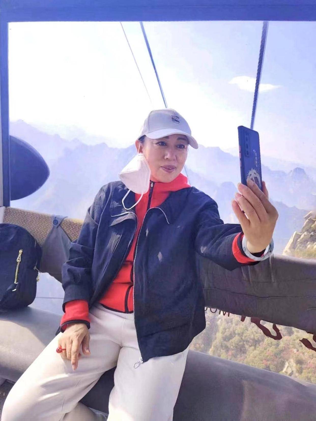 索道行進中,夫人慢慢睜開了眼睛,她猛然看到吊廂外這奇絕壯美的景色,禁不住嘖嘖贊嘆:“啊!華山空中的景色太美了,我們像是在畫里面?!?說著,她趕忙掏出手機,不停地調(diào)整著角度,貪婪地拍攝起來……