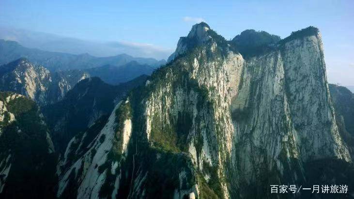 登臨絕頂,豪情滿懷??v目四覽,但見得蒼穹浩瀚,秋陽高懸。群山綿延,云霧繚繞。東、西、南、北、中五座主峰相依相擁,像是一朵盛開的蓮花。極目北望,黃河、渭河、洛河在遠處交匯;放眼南眺,秦嶺巍峨,氣勢磅礴。面對這壯美的景色,我情不自禁吟詠起唐朝詩人李白游覽華山時所寫的詩句“西岳崢嶸何壯哉,黃河如絲天際來。黃河萬里觸山動,盤渦轂轉秦地雷……”