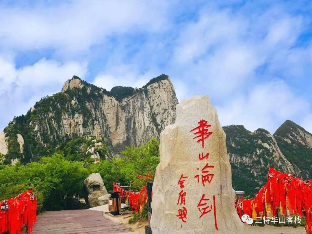 距石亭不遠,便是“華山論劍碑”。碑文乃“華山論劍”作者金庸老先生親筆題寫。高大的石碑,大紅的題字,為華山賦予了濃厚的武俠文化氣息,成為游客拍照留念的打卡地。