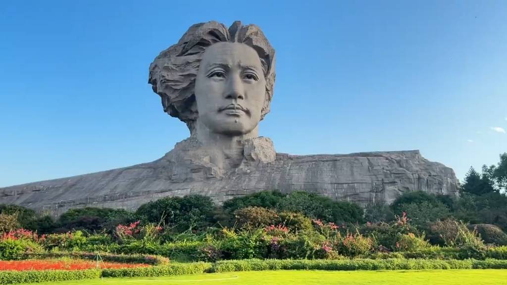 偉人風(fēng)青,湘江奔流,橘子洲頭。望濤濤江水,聲聲不息,大江東逝。云濟(jì)親游,浩路無(wú)窮,深山幽谷,豪邁奔區(qū)竟鮮流,看吟罷,誰(shuí)主江秋?