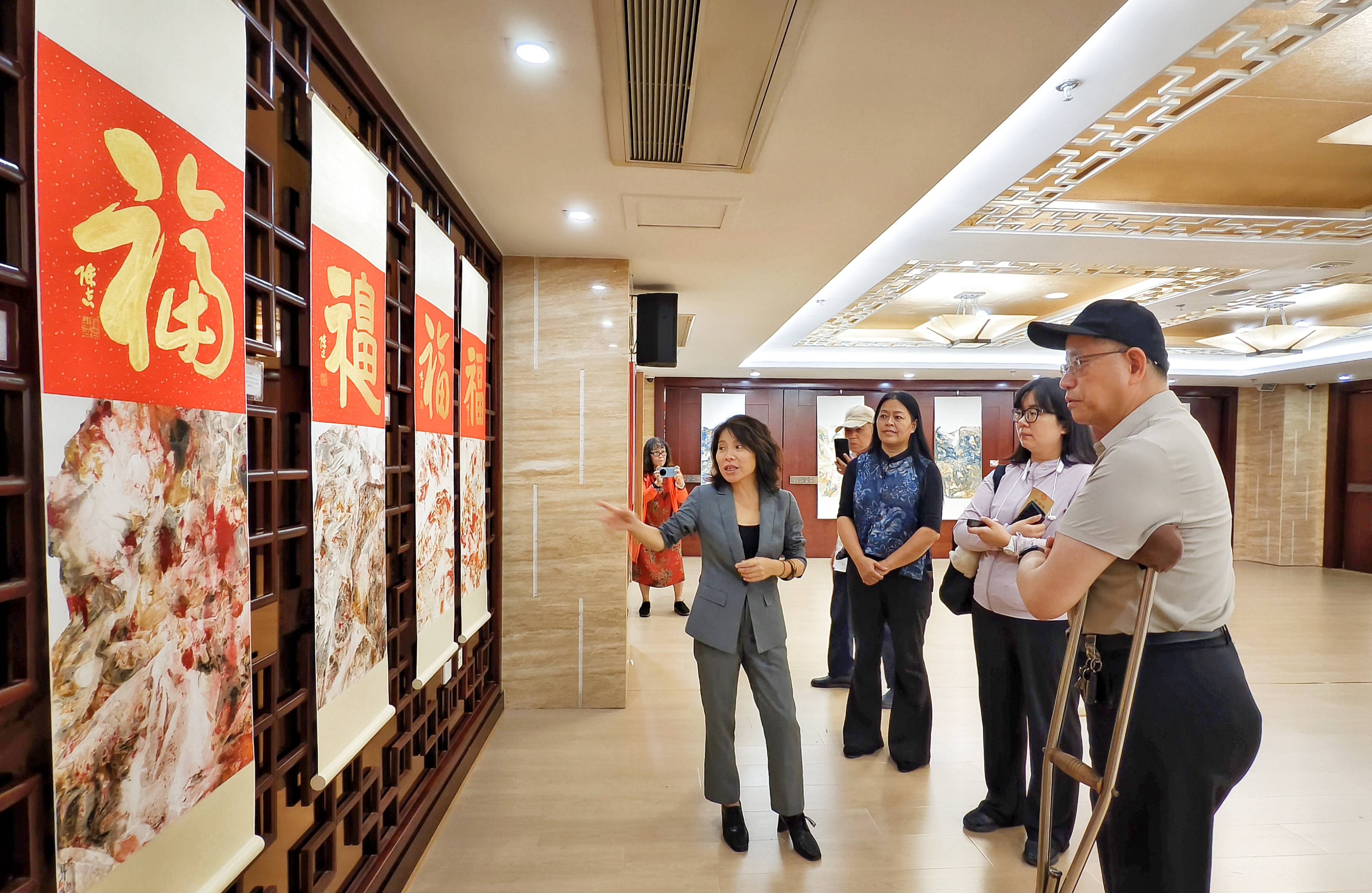 展覽期間,觀眾不僅可以欣賞到精美的藝術(shù)作品,還可以參與DIY植物畫的制作。展覽現(xiàn)場還舉辦了別開生面的“心若菩提”讀書會(huì),由中華慈善總會(huì)愛心藝術(shù)家、“送福大使”林錦如老師主講,向觀眾講解福文化,并現(xiàn)場書寫贈(zèng)福。讀書會(huì)氣氛熱烈,透過美學(xué)解析、交流討論等方式,讓觀眾更深切地感受到非遺藝術(shù)的魅力。參觀者紛紛表示,這次展覽不僅豐富了他們的視覺體驗(yàn),更是一場將藝術(shù)與生活緊密結(jié)合的美學(xué)盛宴。