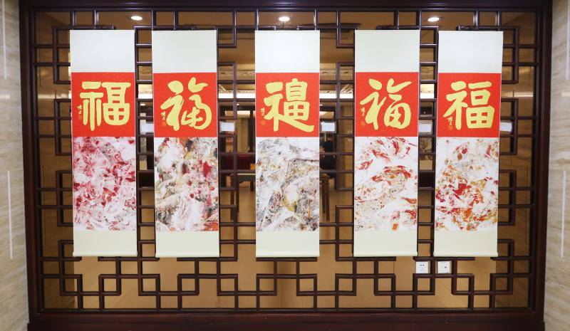 此次“尋福記”非遺聯(lián)展,共展出植物畫系列作品30幅,以及多系列植物畫文創(chuàng)作品,另有名家漂漆書畫精品28幅和6大系列大漆文創(chuàng)品展出。展品通過巧妙融合漂漆技藝與書法藝術(shù),進(jìn)一步豐富了“福文化”的表現(xiàn)形式,促進(jìn)了福文化的傳播與傳承。尤其是由中國藝術(shù)研究院中國書法院研究員陳吉與臺(tái)灣青年大漆藝術(shù)家林芊劭合作完成的“五福臨門”和“五福齊享”漂漆書法作品,更是傳遞了五福齊享、五福臨門的美好寓意,展示了兩岸藝術(shù)家攜手傳承、創(chuàng)新發(fā)展的豐碩成果。