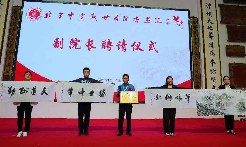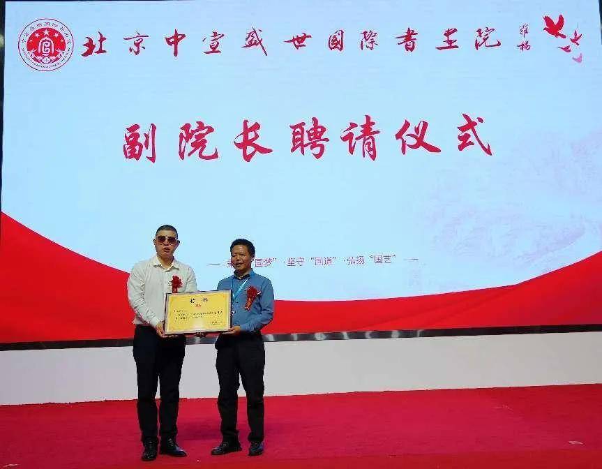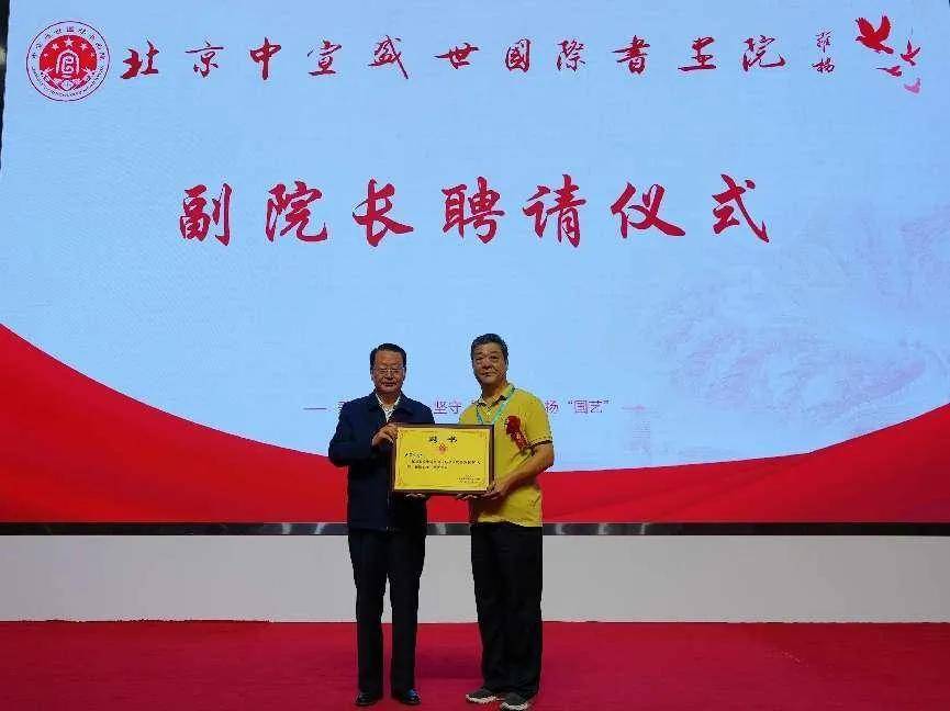 會上為中宣盛世國際書畫院新增選的副院長: 盧景賢、廖義和進行了授牌儀式。