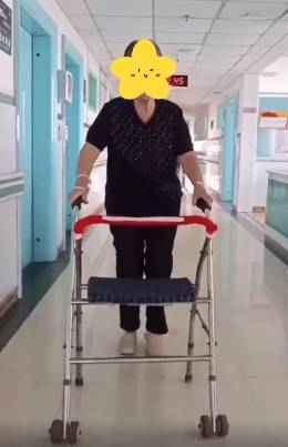 患者術(shù)后 病情穩(wěn)定, 在骨科醫(yī)護(hù)人員的精心照料下,可在助行器輔助下下地活動(dòng), 關(guān)節(jié)疼痛明顯緩解, 功能顯著改善。術(shù)后第2天,患者雙手便可推開(kāi)助行器行走 。面對(duì)良好的手術(shù)效果,患者露出了滿(mǎn)意的笑容。