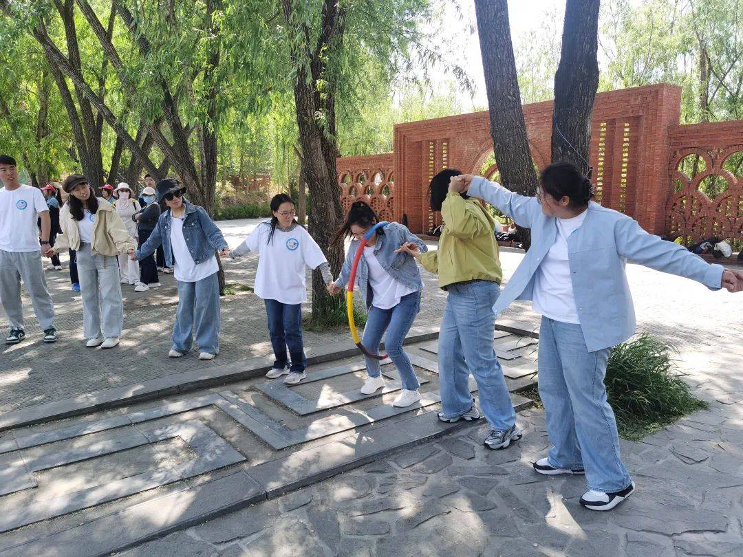 活動當(dāng)日清晨,參與活動的青年們準(zhǔn)時登上大巴車,一路歡聲笑語駛向風(fēng)景秀麗的萬泉湖。 抵 達目的地后,一場充滿趣味的“猜猜我是誰”破冰游戲迅速點燃現(xiàn)場氣氛。青年們手拉手圍成圓圈,隨著音樂節(jié)奏傳遞呼啦圈,全程不能用手觸碰,在緊張又歡樂的互動中,大家迅速打破陌生感。熱身結(jié)束后的自我介紹環(huán)節(jié),讓彼此有了初步的認(rèn)識與了解。