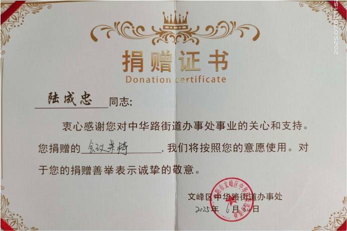 中華路街道服務(wù)人口密集,下轄7村7社區(qū),繁重的治理任務(wù)與資金保障不足的矛盾日益凸顯。盡管社區(qū)干部編制已落實(shí),但資金缺口致使辦公條件嚴(yán)重滯后。辦公場(chǎng)所擁擠逼仄,基礎(chǔ)設(shè)備匱乏,新入職社區(qū)干部連基本桌椅都難以配齊,電腦、打印機(jī)等設(shè)備更是缺口巨大。這些短板不僅阻礙基層治理規(guī)范化發(fā)展,拉低工作效率與服務(wù)質(zhì)量,更讓治理創(chuàng)新舉步維艱。作為政協(xié)常委、民建八支部主委的陸成忠始終將社會(huì)服務(wù)職責(zé)扛在肩頭。他深刻認(rèn)識(shí)到,完善的辦公設(shè)施是提升基層治理效能的重要基石。他主動(dòng)作為,捐贈(zèng)的這批會(huì)議桌椅如“及時(shí)雨”般,有效緩解了辦公設(shè)施短缺困境,為會(huì)議開(kāi)展、群眾接待等工作提供堅(jiān)實(shí)保障,推動(dòng)基層工作標(biāo)準(zhǔn)化水平顯著提升,助力社區(qū)干部高效履職,彰顯了新時(shí)代政協(xié)委員的使命擔(dān)當(dāng)與為民情懷,也詮釋了心系基層、服務(wù)群眾的赤誠(chéng)初心,為社會(huì)各界參與基層建設(shè)樹(shù)立了榜樣。