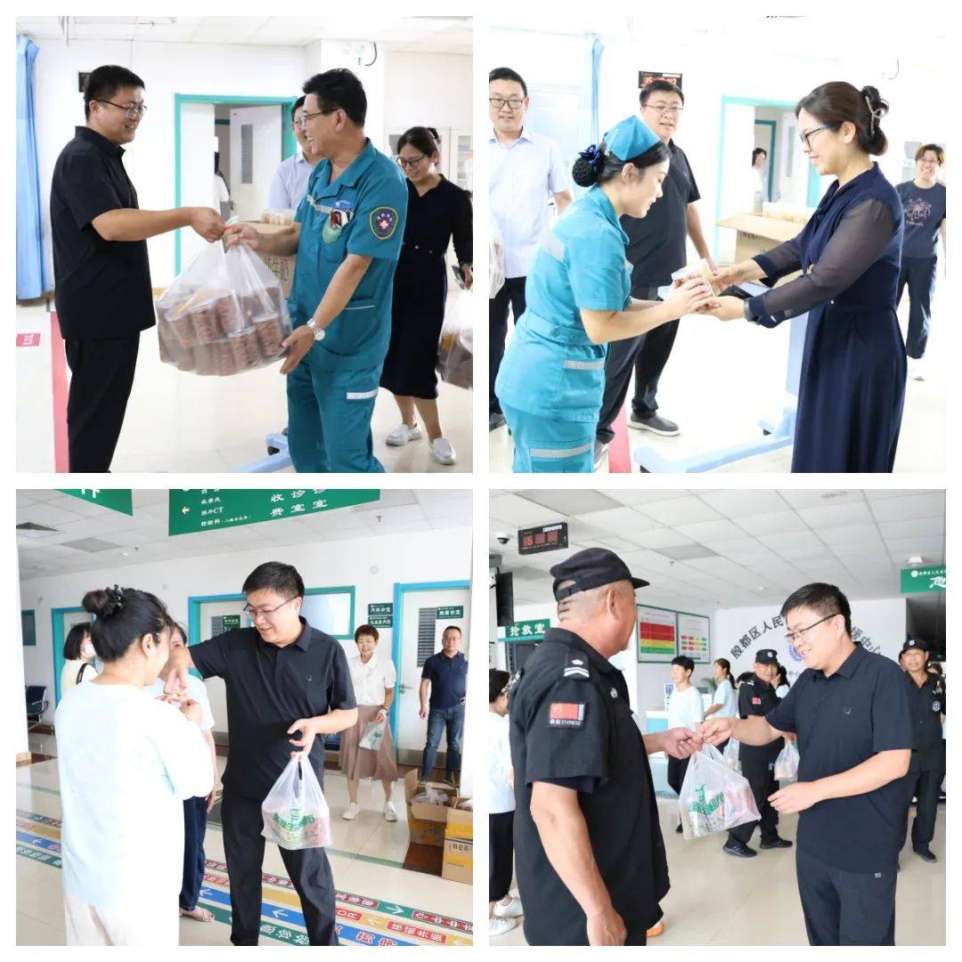發(fā)放福利時(shí),黨委書記司曉劍帶領(lǐng)院領(lǐng)導(dǎo)班子成員,將一份份承載著關(guān)懷的福利送到一線崗位。在急診大廳,院領(lǐng)導(dǎo)們面帶微笑,將梔子茶和冰糖遞到保安和保潔人員手中,關(guān)切地叮囑道:“高溫天堅(jiān)守崗位太不容易了,一定要注意身體?!弊哌M(jìn)急診科,他們又向忙碌中的醫(yī)護(hù)人員表達(dá)慰問:“天氣熱,大家辛苦了,多喝點(diǎn)茶降降溫?!?/p>