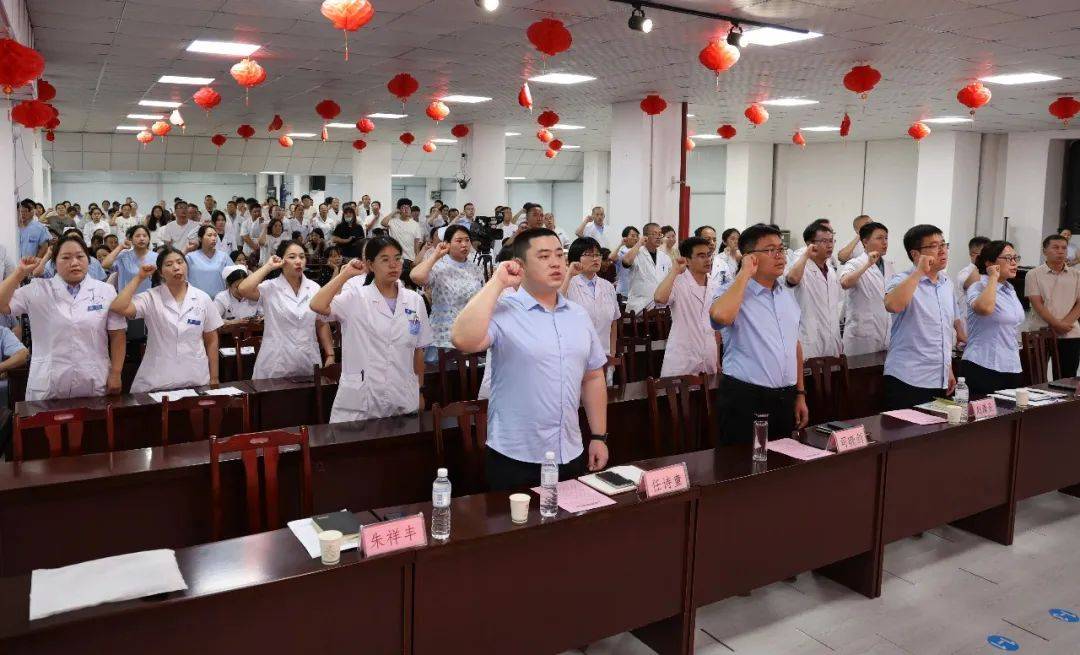 誦讀《中國醫(yī)師宣言》是活動的重要環(huán)節(jié)。在副院長朱祥豐的領誓下,全體醫(yī)師身著白大褂,舉起右拳,莊嚴宣誓。鏗鏘有力的誓言在會場久久回蕩,這是對從醫(yī)初心的回望,更是對職業(yè)責任的堅守。