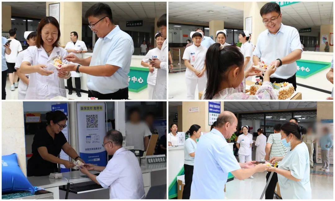 醫(yī)者仁心,流露在對患者的每一份關(guān)懷里。院領導們將蛋糕小心分切,“來,大家一起嘗嘗,今天是醫(yī)師們的節(jié)日,也感謝大家對醫(yī)院的信任!” 隨著一聲熱情的招呼,正在候診的患者們紛紛上前,接過工作人員遞來的蛋糕。一時間,大廳里的歡語交織在一起,醫(yī)患之間的距離在分享甜蜜的瞬間悄然拉近,深切感受到醫(yī)院的溫暖與關(guān)懷。