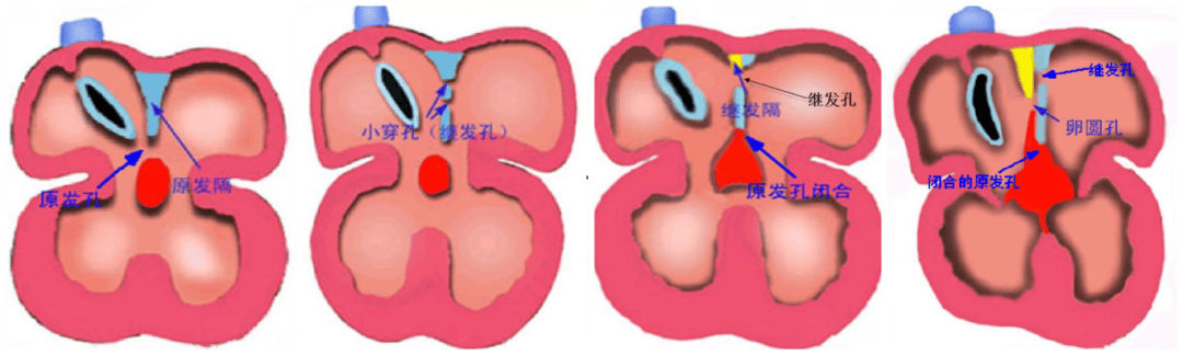 房間隔缺損是由原發(fā)隔和繼發(fā)隔組成,原發(fā)隔位于左側(cè),繼發(fā)隔位于右側(cè)。