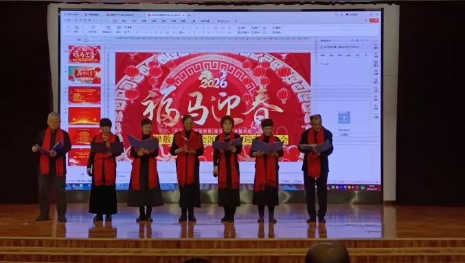 曹淑蓮自創(chuàng)合誦詩歌《新年,你好!》,黃靜、李蘭芳、曹淑蓮、李其林、范慶玲、王平精神飽滿地走上舞臺,滿懷深情地回望2025的收獲,展望2026的新征程,歌頌祖國,面向未來,鏗鏘有力的朗誦聲和音樂聲匯成一股強(qiáng)大的凝聚力。