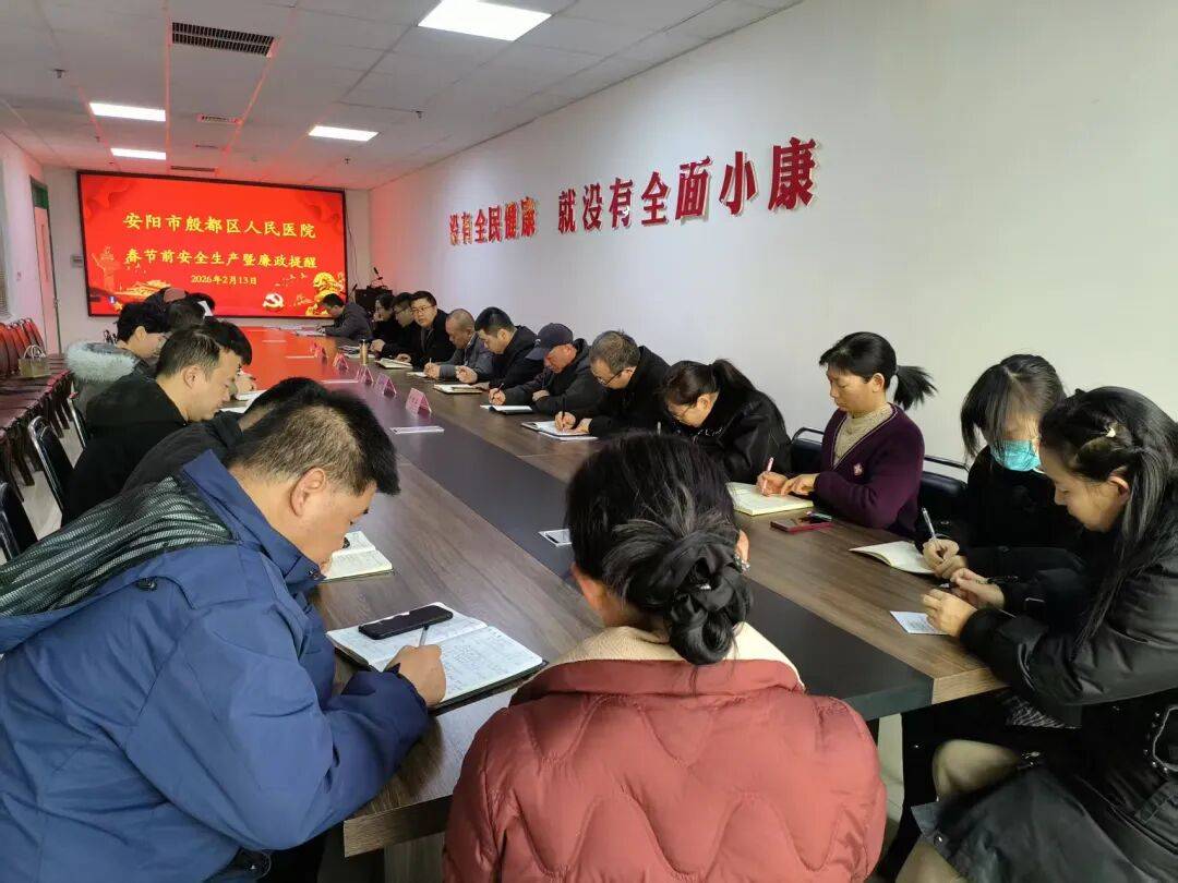 歲序更替,華章日新。在2026年農(nóng)歷新春佳節(jié)即將到來(lái)之際,為切實(shí)筑牢節(jié)日安全生產(chǎn)防線,保障醫(yī)院平穩(wěn)有序運(yùn)行與群眾就醫(yī)安全,殷都區(qū)人民醫(yī)院提前部署、周密安排,先后召開春節(jié)前安全生產(chǎn)工作會(huì)議,并由領(lǐng)導(dǎo)班子帶隊(duì)深入全院開展節(jié)前安全生產(chǎn)專項(xiàng)檢查,同步走訪慰問堅(jiān)守崗位的一線醫(yī)務(wù)人員,以責(zé)任守護(hù)平安,以溫情傳遞關(guān)懷。