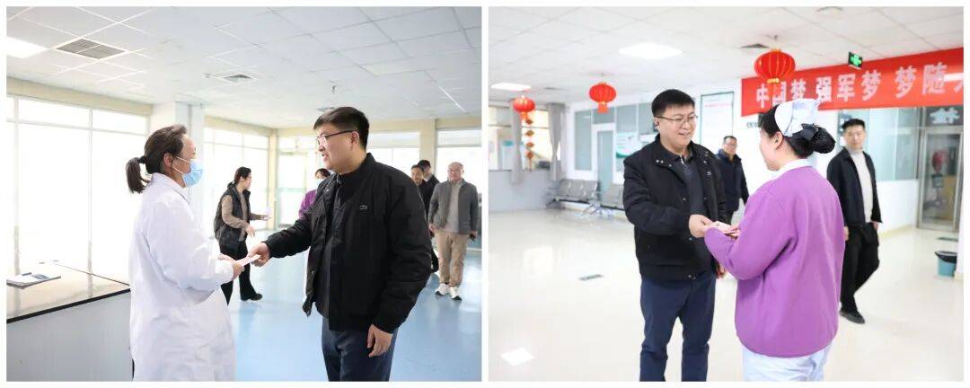 慰問現(xiàn)場(chǎng),院領(lǐng)導(dǎo)班子與一線醫(yī)務(wù)人員親切交流,向大家致以誠(chéng)摯的節(jié)日問候與新春祝福,對(duì)大家過(guò)去一年恪盡職守、守護(hù)群眾健康的辛勤付出表示衷心感謝。黨委書記司曉劍強(qiáng)調(diào),春節(jié)是醫(yī)療服務(wù)保障的關(guān)鍵時(shí)期,全院職工要始終堅(jiān)持以患者為中心,繃緊安全之弦、壓實(shí)崗位之責(zé),嚴(yán)格落實(shí)節(jié)日值班值守制度,科學(xué)調(diào)配醫(yī)療資源,強(qiáng)化急診急救與應(yīng)急處置能力,全力保障群眾就醫(yī)需求,守護(hù)人民群眾生命健康。