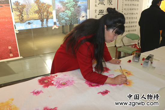 ![]() 圖為畫(huà)家賈敬釵繪制“牡丹圖”。