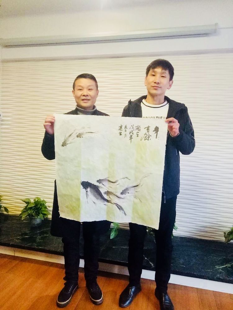 金融分會(huì)秘書長(zhǎng)著名畫家蔣建生贈(zèng)送作品并和程魏巍合影
