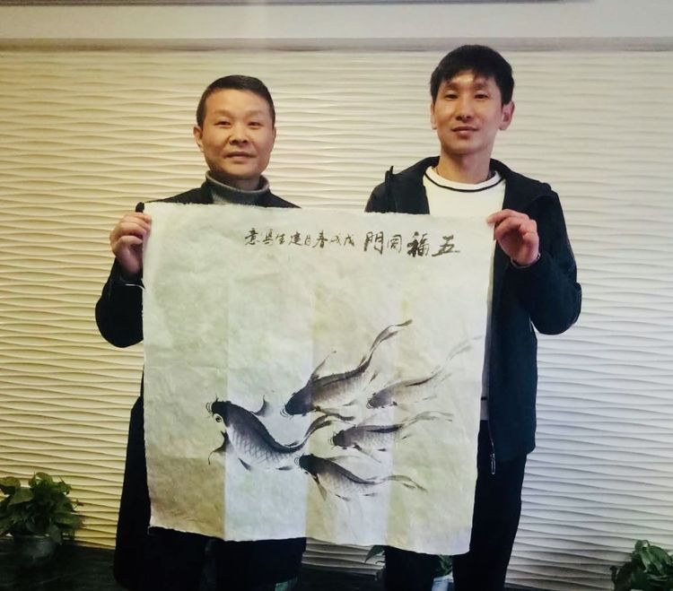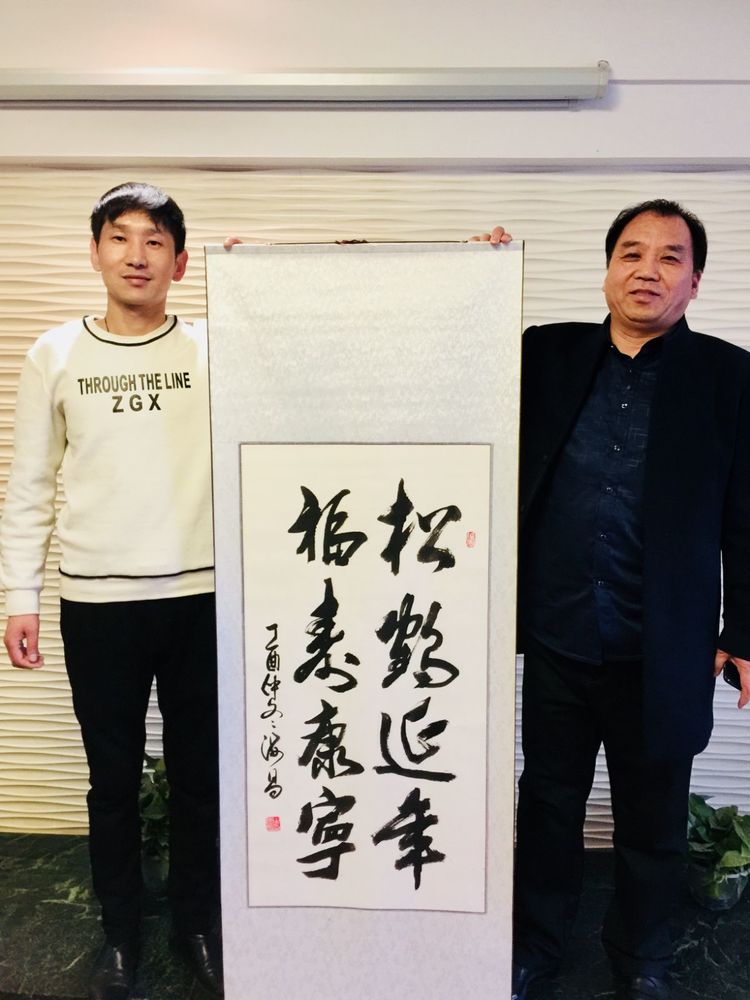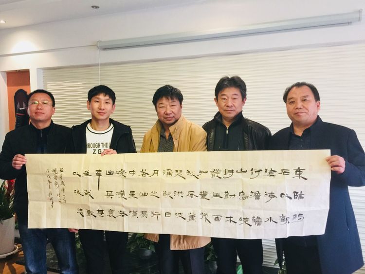 林州商會(huì)牛海昌會(huì)長(zhǎng)與北京正航贈(zèng)送作品并合影