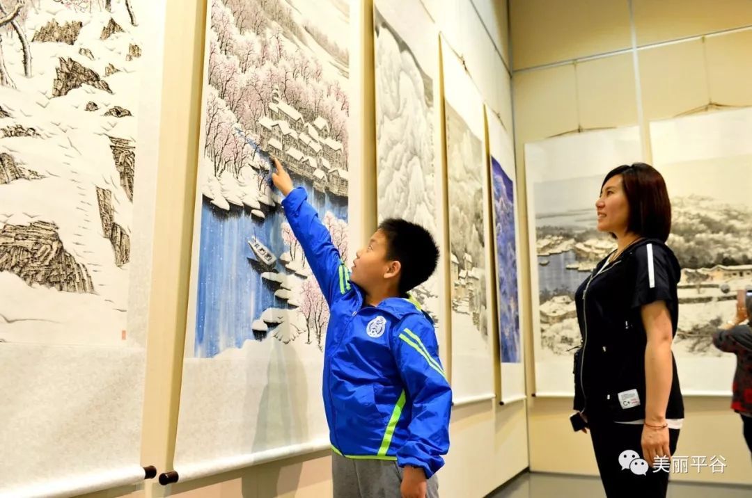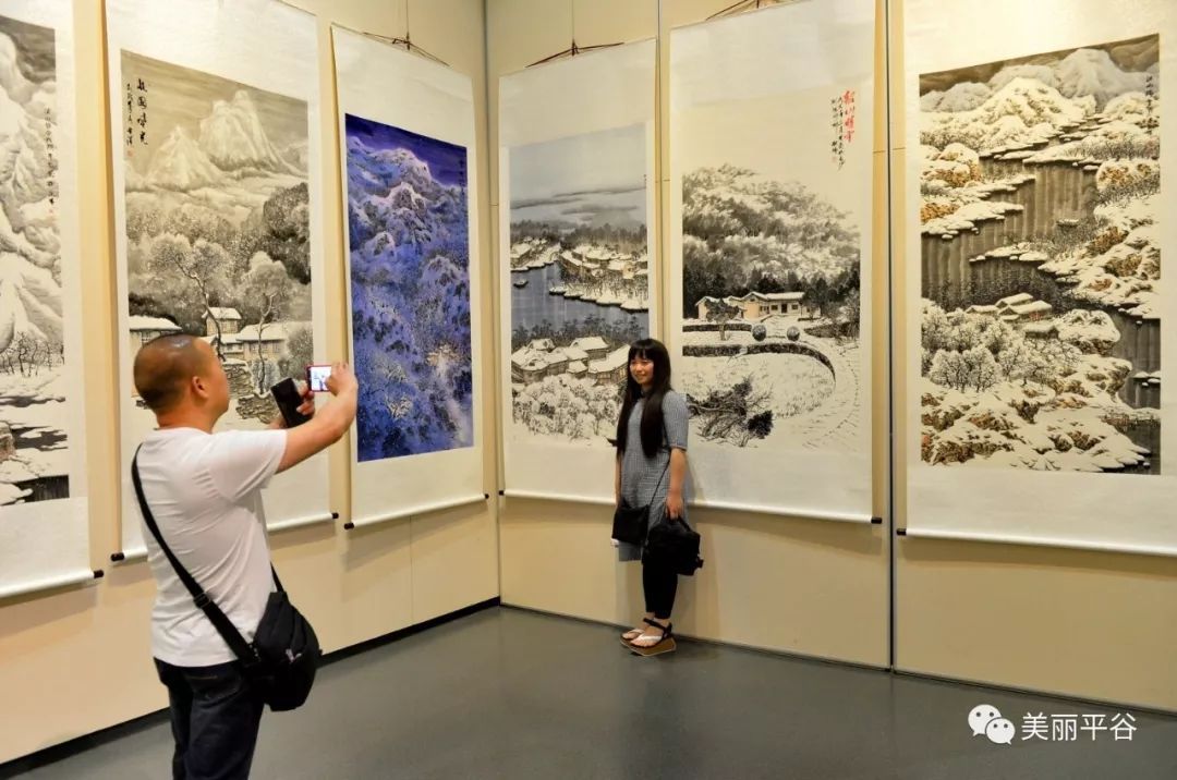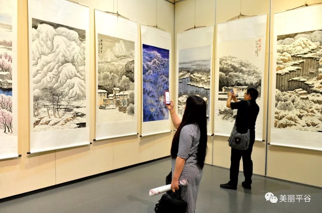 本屆書畫展由中國科學(xué)院文聯(lián)和中共北京市平谷區(qū)大興莊鎮(zhèn)委員會(huì)、北京市平谷區(qū)大興莊鎮(zhèn)人民政府聯(lián)合主辦,桃花川書畫院和冰雪藝術(shù)研究院承辦。旨在宣傳大美平谷,推動(dòng)水墨周莊文化創(chuàng)意產(chǎn)業(yè)發(fā)展,展現(xiàn)平谷文化形象,增強(qiáng)平谷文化事業(yè)和文化產(chǎn)業(yè)的凝聚力、引領(lǐng)力、支撐力和影響力。主展館設(shè)在平谷區(qū)博物館,業(yè)界享負(fù)盛名的50余名書畫大師,精選得意作品300余幅參展。中國科學(xué)院美術(shù)家協(xié)會(huì)秘書長劉芙蓉的作品《碩果累累》;中科院美協(xié)副秘書長楊華的作品《23兩彈一星功勛人物集體肖像》;中科院院士、數(shù)學(xué)家嚴(yán)加安的書法作品《感懷》;中國法治詩書畫院院長汪國新的作品《朋友》;中科院美協(xié)會(huì)員合作創(chuàng)作的作品《春色滿園》;山水畫家、中國名家書畫院副院長史貴仁的畫作《溪嶺桃園》;海軍政治部創(chuàng)作室創(chuàng)作員甘長霖的《荷香》;軍旅畫家張福盈的《筑巢金絲藤》;最為震撼的是,中科院美協(xié)主席、平谷本地畫家周春民特意為此次書畫展創(chuàng)作的畫作《春江水暖(周莊子印象)》,作品體現(xiàn)了濃濃的鄉(xiāng)愁,吸引諸多書畫愛好者在前拍照品鑒。