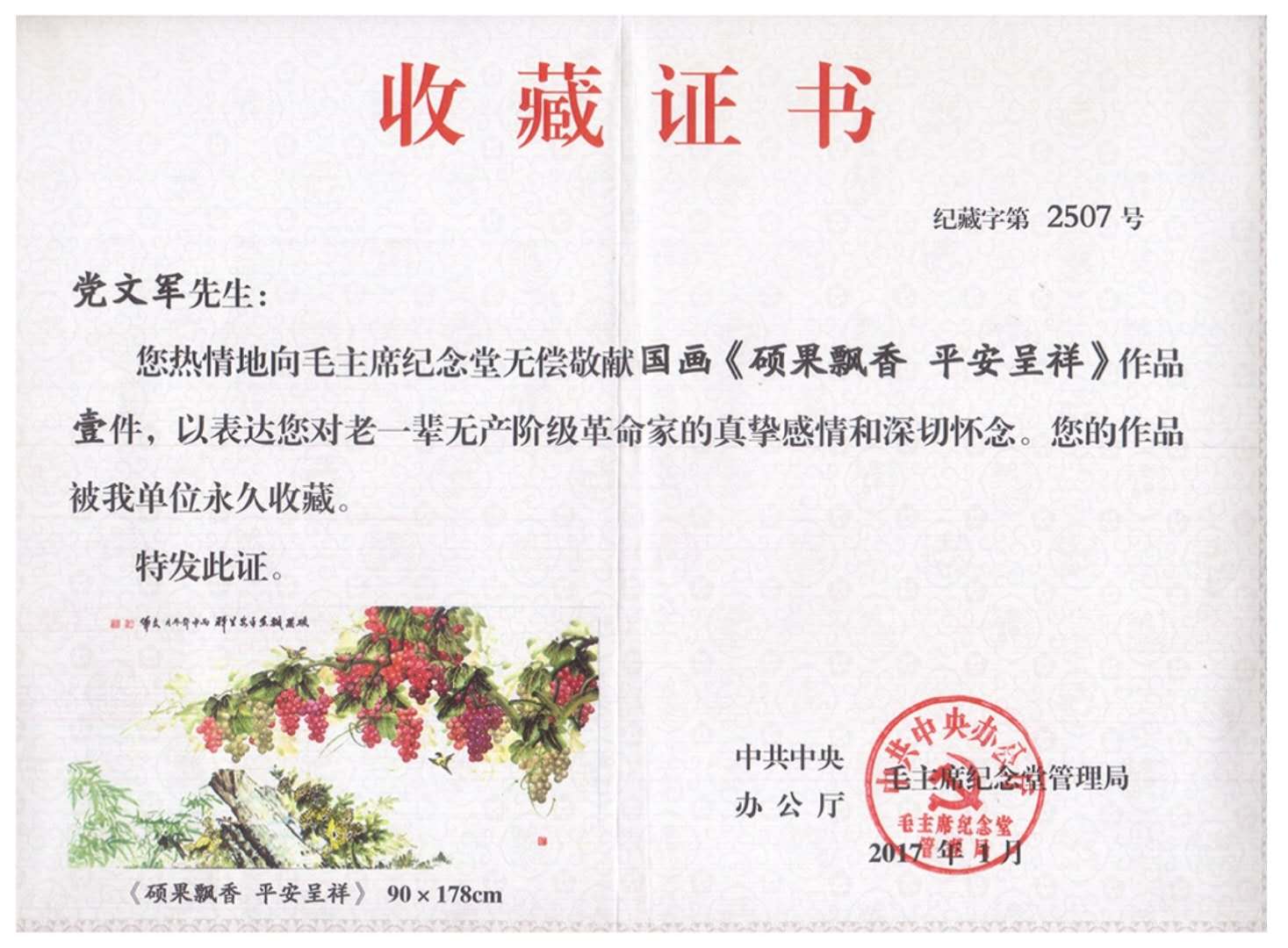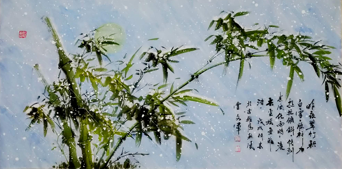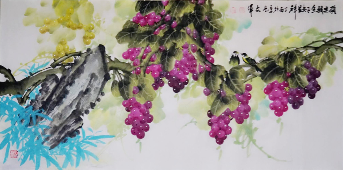 ??? 黨文軍? 字俊逸,秋風(fēng)堂主人,生于1965年1月,系陜西省蒲城縣,在職研究生學(xué)歷,國家一級美術(shù)師。中國國際書畫藝術(shù)研究會會員,河南省書法家、美術(shù)家協(xié)會會員,河南省檢察文聯(lián)委員會委員,洛陽檢察文聯(lián)理事、書畫協(xié)會會長,北方象山書畫院專職書畫家。自幼酷愛書畫藝術(shù),二十多年的軍營文化氛圍熏陶,一直把研習(xí)中國傳統(tǒng)水墨畫技作為生活情趣和追求,擅長花鳥國畫創(chuàng)作與研究,形成了自己獨(dú)特的藝術(shù)風(fēng)格,其筆下墨竹、葡萄系列堪稱一絕,被譽(yù)為“中原葡萄王”。其作品《碩果飄香平安呈祥》被毛主席紀(jì)念堂永久收藏,在建國55周年盛事中華“長通杯”、軍內(nèi)書畫展等全國性比賽中獲一、二等獎、優(yōu)秀獎,先后被多家國家級刊物和網(wǎng)絡(luò)媒體刊登并轉(zhuǎn)載,深受廣大書畫收藏者的喜愛。