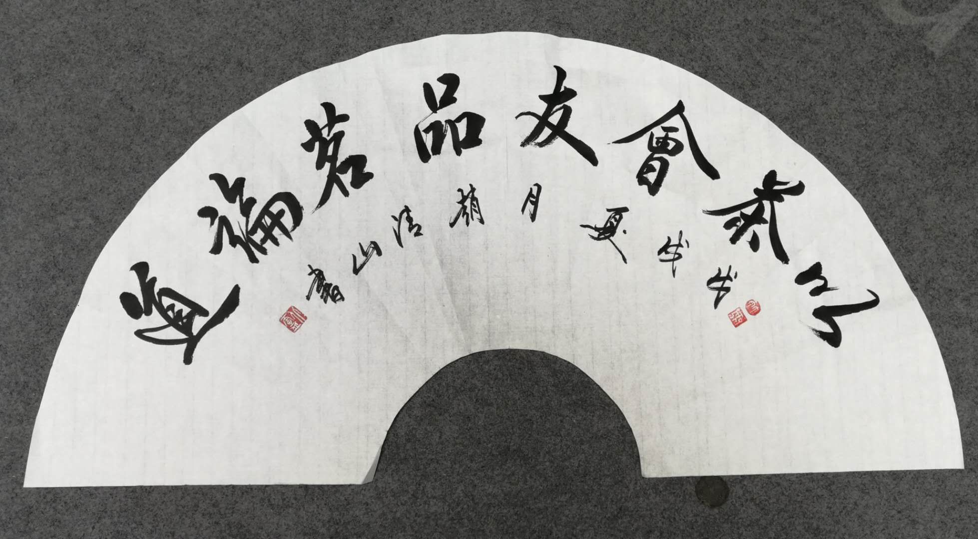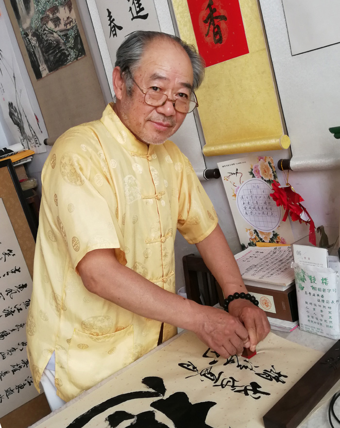 ??? 習(xí)書格言“人玩其華,我取其實(shí)”。其祖父文韜武略,解放前曾是一名塾書先生。受先輩的影響,又在父親的督導(dǎo)教悔下,自幼就酷愛上了書畫。學(xué)童期間就能承辦黑板報(bào),頻受老師、大人們的贊揚(yáng)。幾十年臨池勤耕不輟,尤對(duì)“二王”書法情有獨(dú)鐘,習(xí)書學(xué)法,研習(xí)了甲骨文、篆、隸書。并大量研習(xí)了歐、顏、柳、趙……等歷代名家書貼,取法呼上,寄情于點(diǎn)畫之間,不斷探索尋出了一條能自我完善,表達(dá)多重心線的藝術(shù)之路。1973年參加工作,長(zhǎng)期從事宣傳工作,創(chuàng)作了大量的板報(bào)、墻體壁畫、報(bào)紙等宣傳欄目,大字寫四米,小字似蠅頭??瑫c(diǎn)畫寫的厚重勁健、行書寫的灑脫暢達(dá),方方圓圓別具一格,真可謂一花一世界,一葉一乾坤。