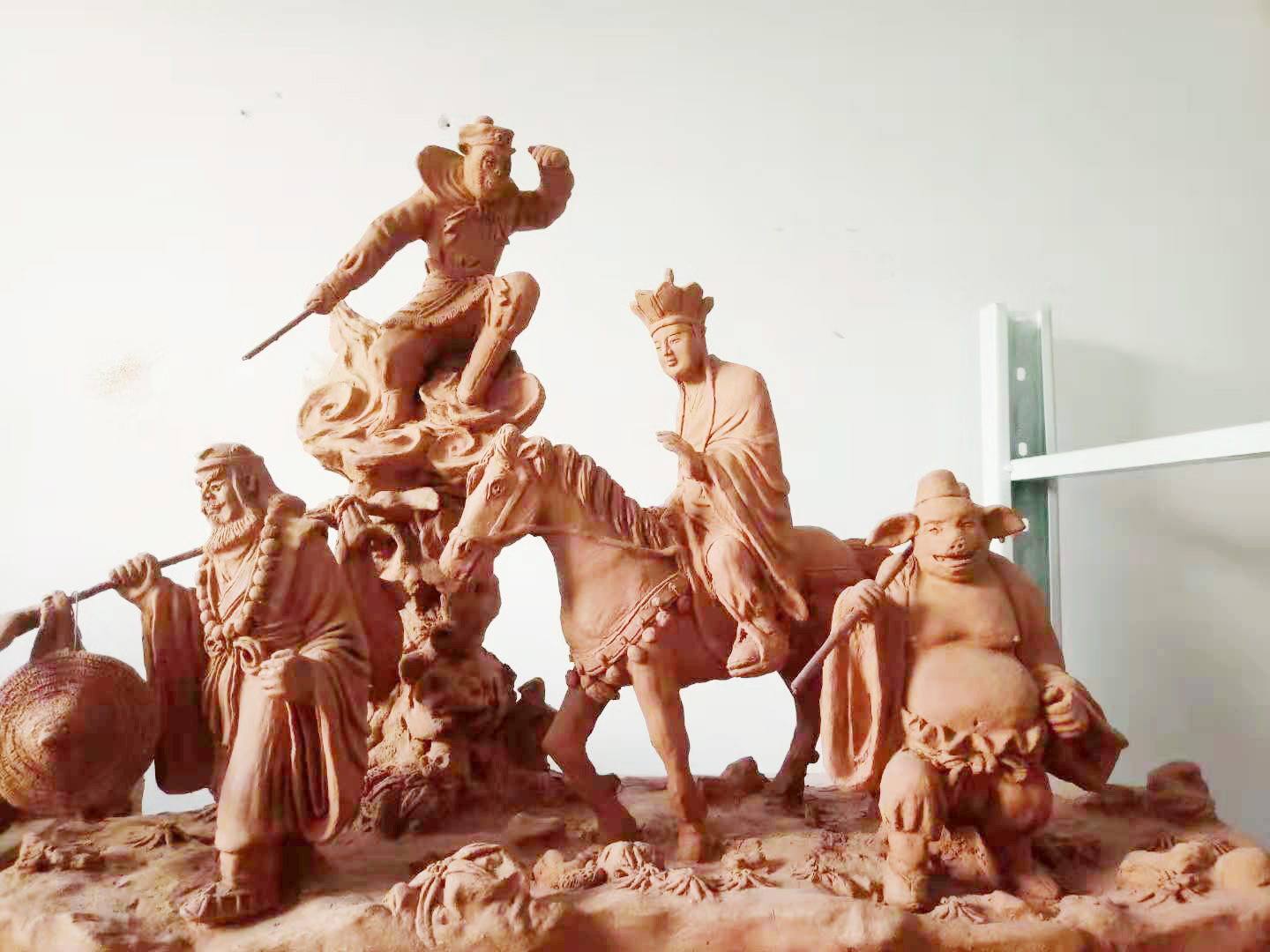 當來到他家時,被門盈上人“人杰地靈”的牌匾所吸引,我正在仰望欣賞時,主人周先生忙上前迎接,將我領進貴宅,并請到他的工作室,周夫人忙著給沏上熱茶,但我未顧及品茶,就被那擺滿櫥柜的泥塑精品所吸引:栩栩如生的觀音、彌勒佛、長征人物故事和老鼠娶媳婦等神態(tài)各異的泥塑作品,讓我目不暇接,深深的被周先生的精品力作所感動,使我肅然起敬。當我問起到周先生的從藝經(jīng)歷時,他繞有興致地向我們娓娓道來。